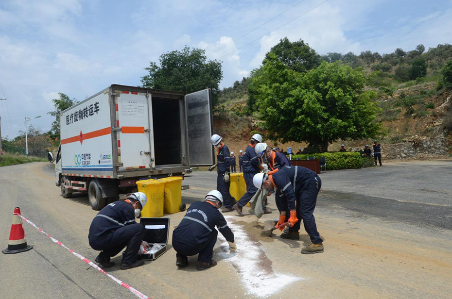 為進一步加強醫(yī)療廢物收運過程中道路運輸安全管理工作,有效應對道路運輸突發(fā)事件,更好保障職工和公眾的環(huán)境安全。2017年7月4日,中節(jié)能(攀枝花)清潔技術發(fā)展有限公司(以下簡稱攀枝花公司)在生產廠區(qū)組織開展道路運輸安全應急演練。市交通運輸管理部門領導現場觀摩。