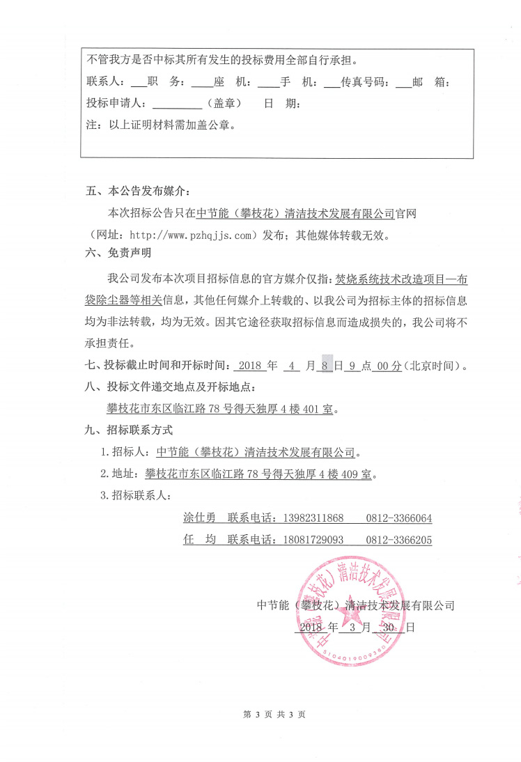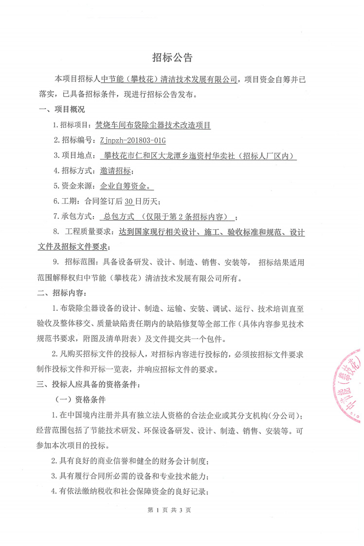 焚燒車間布袋除塵器技術改造項目招標公告