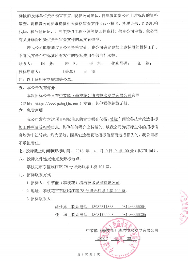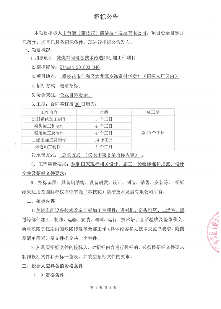 焚燒車間設(shè)備技術(shù)改造非標(biāo)加工件項(xiàng)目招標(biāo)公示