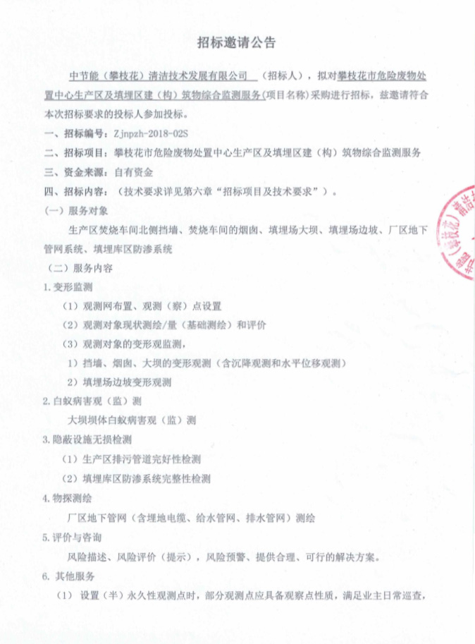 生產(chǎn)區(qū)及填埋區(qū)建(構(gòu))筑物綜合檢測服務(wù)采購進(jìn)行招標(biāo)邀請公告