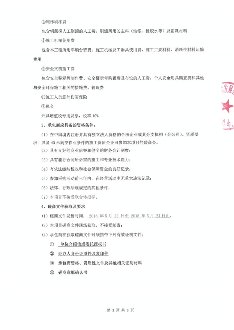 焚燒車間高煙囪爬梯安全性檢查及防腐工程競爭性磋商公告